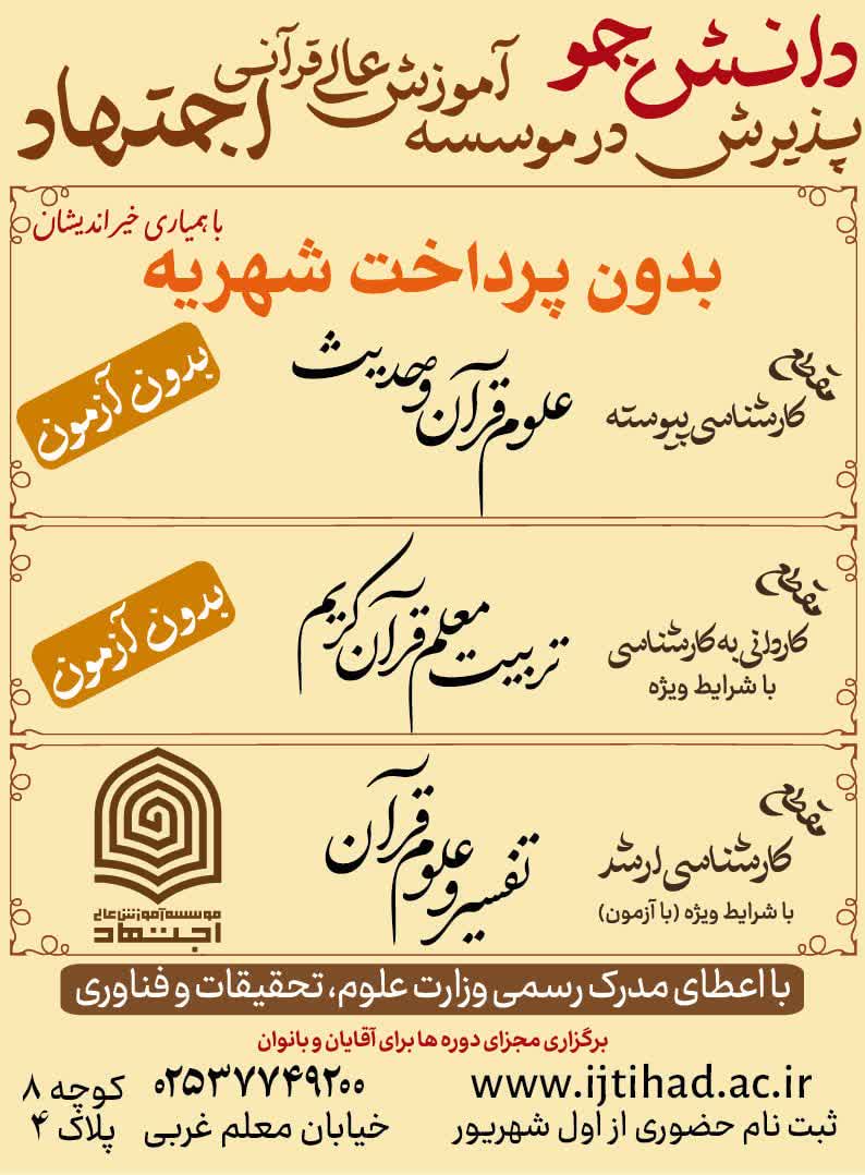 آموزش پژوهش قرآن و حدیث، کارشناسی و ارشد.